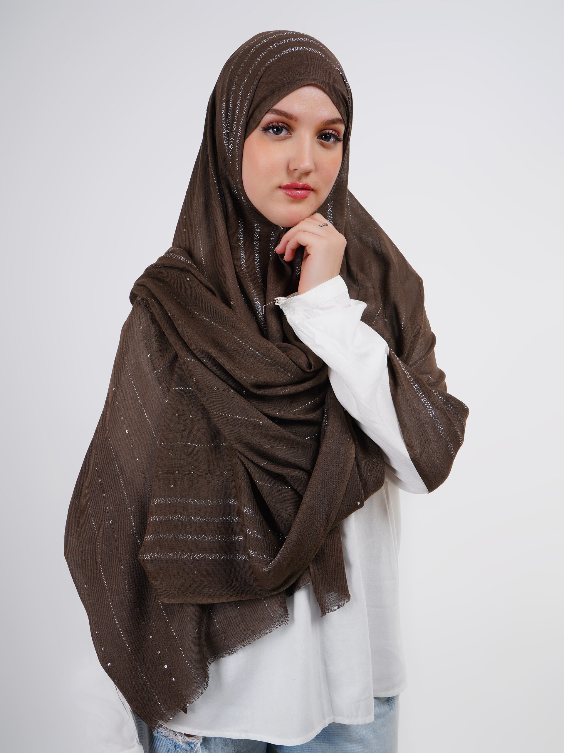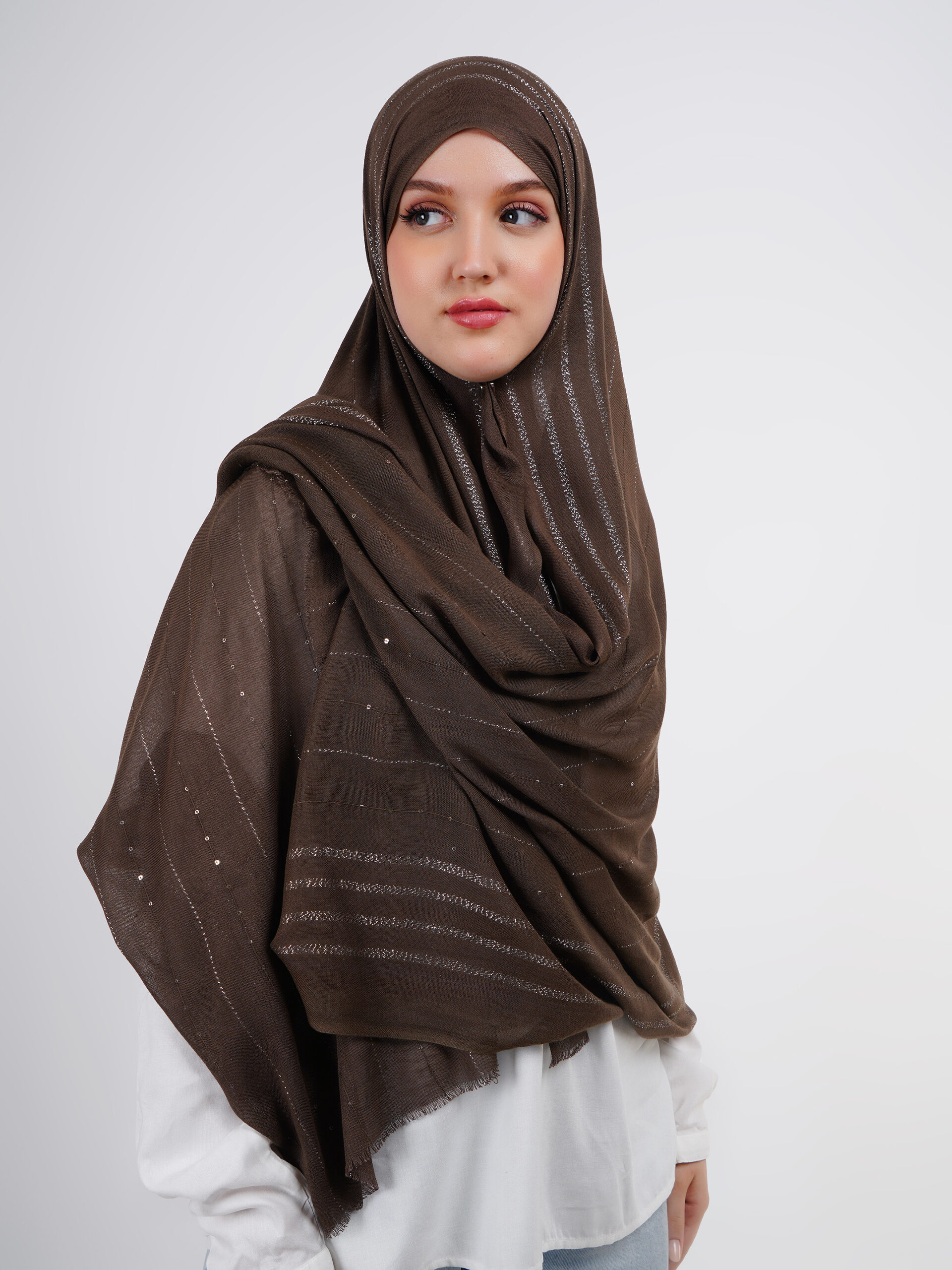 Lightweight modal scarves with a delicate shimmer, designed for breathable comfort and a graceful drape that adds refined elegance to any look.
