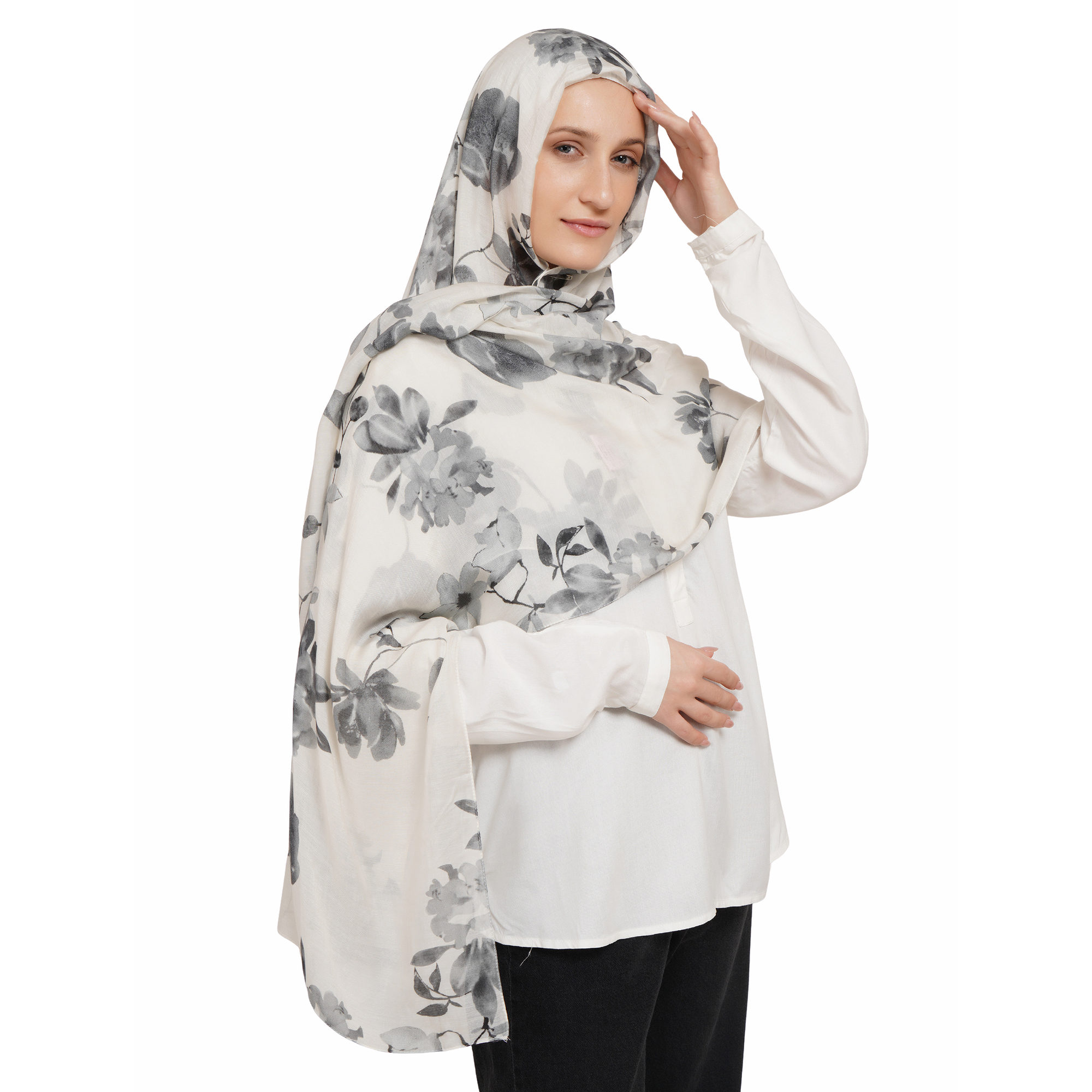 Soft, lightweight modal silky printed hijab with elegant drape,