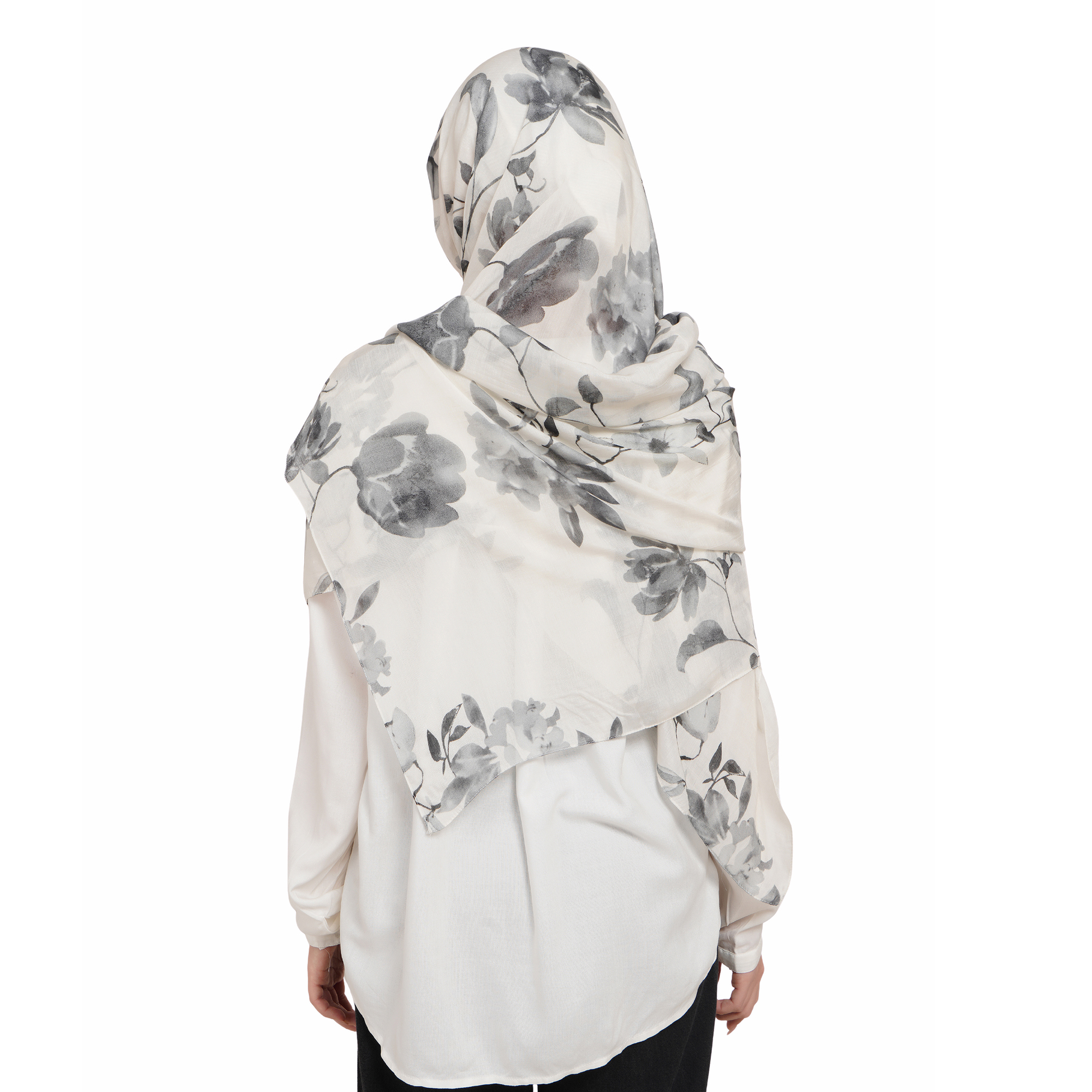 Monochrome Floral Elegance Silky Modal Print Scarf– Grey Bloom